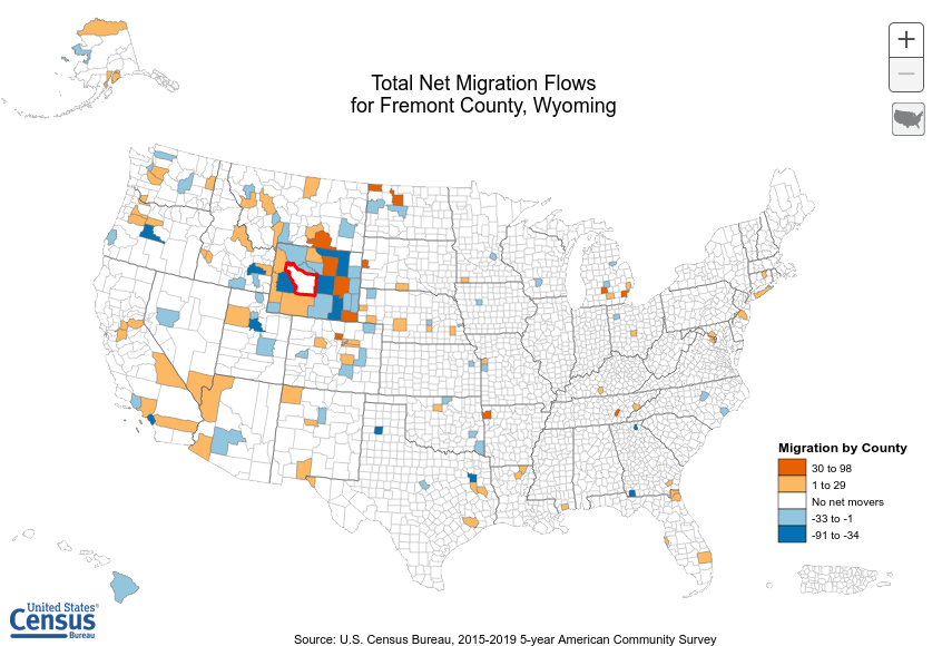 Estimating fine-level migration trends is an important part of allocating resources to ensure long-term projects, such as building infrastructure, are placed optimally to benefit the population that may be growing or shrinking in response to other large scale events. Analyses of local migration trends and impacts are fairly common as the data is fairly easy to attain. A recent study by Badger et al (2021) showed how the local data revealed a trends in migration into politically polarized communities. When it comes to holistic migration data in the U.S. the Census Bureau county to county migration flows represents some of the most fine-grained details that are publicly available. As can be seen from the graphic below this fine level data reveals significant geographically separated patterns, while most migration is obviously from within inner-state counties, on the national level counties can be interconnected without immediately obvious patterns. In this a paper a model is proposed representing national migration impact on county level immigration based on underlying political demographics as a partial explanation for the patterns.